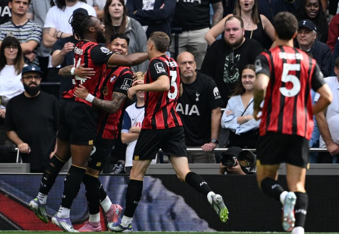 英超第3轮的一场比赛展开争夺,热刺在主场迎战伯恩茅斯。热刺本赛季在新教练弗兰克的率领下取得非常完美的开局:前2场联赛都赢了。热刺先是在主场3-0完胜伯恩利,随后在客场2-0击败夺冠热门曼城。2场比赛都零封对手,非常给力。如今热刺回归主场,面对的是实力一般的伯恩茅斯。结果没想到热刺爆出了冷门,输给了伯恩茅斯,连胜就此终结。
